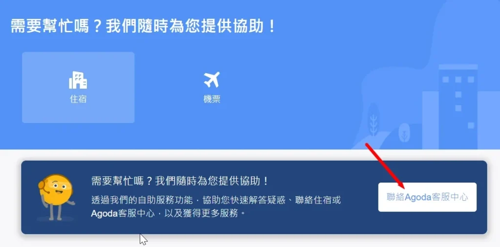 如果在已經列出的問題中沒有找到答案,可以點頁面右上角 “聯絡 Agoda 客服中心”,打開線上對話框。
